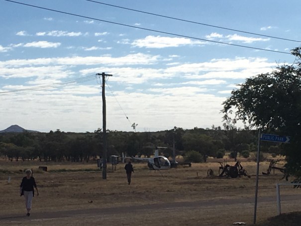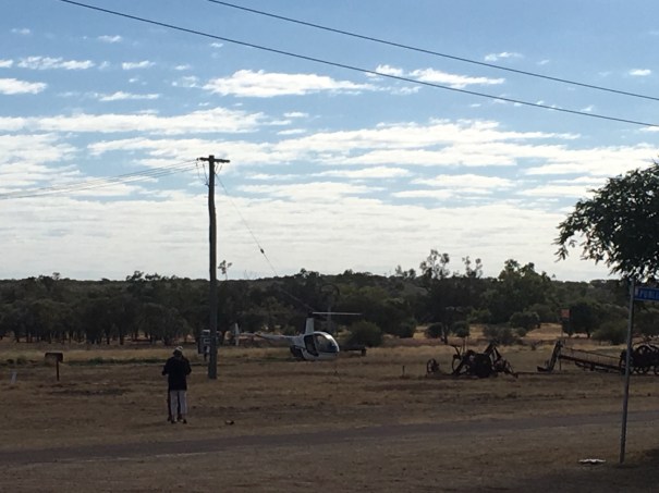 Out here at Yaraka they muster cattle using helicopters 🚁. One of the musterers had run out of tobacco and the makings for his smokes so he phoned in an order, flew in to the paddock over the road, was met by the publican with the goods – and off he went again.