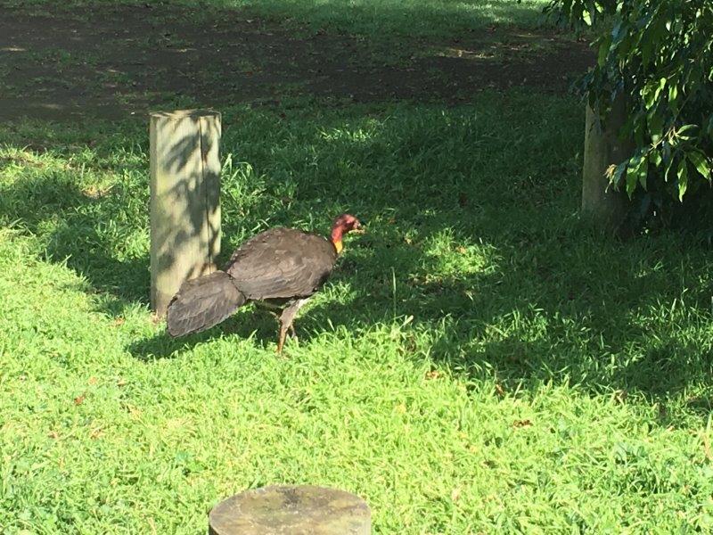 Here’s some Brush Turkey Trivia for you – their chicks hatch fully feathered and can fly within a few hours. By the way, when they land on the roof of your house they make a heck of a noise.